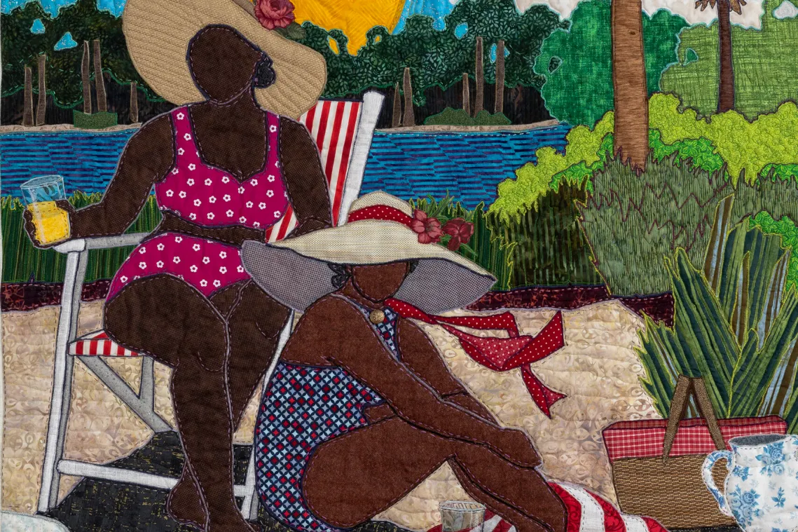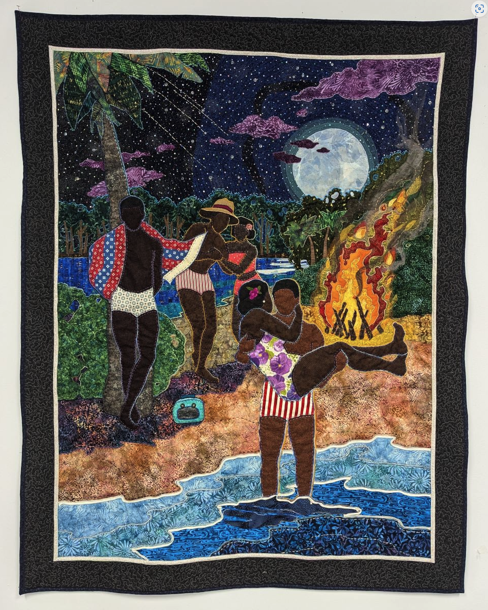 Stephen Towns took inspiration from photographer Bruce Mozert, who captured images of both Silver Springs and Paradise Park. His paintings and quilts recreate these moments, showing families having picnics, kids playing, and couples dancing. His work challenges the idea that segregation was only about hardship—it was also about resilience, joy, and creating safe spaces.