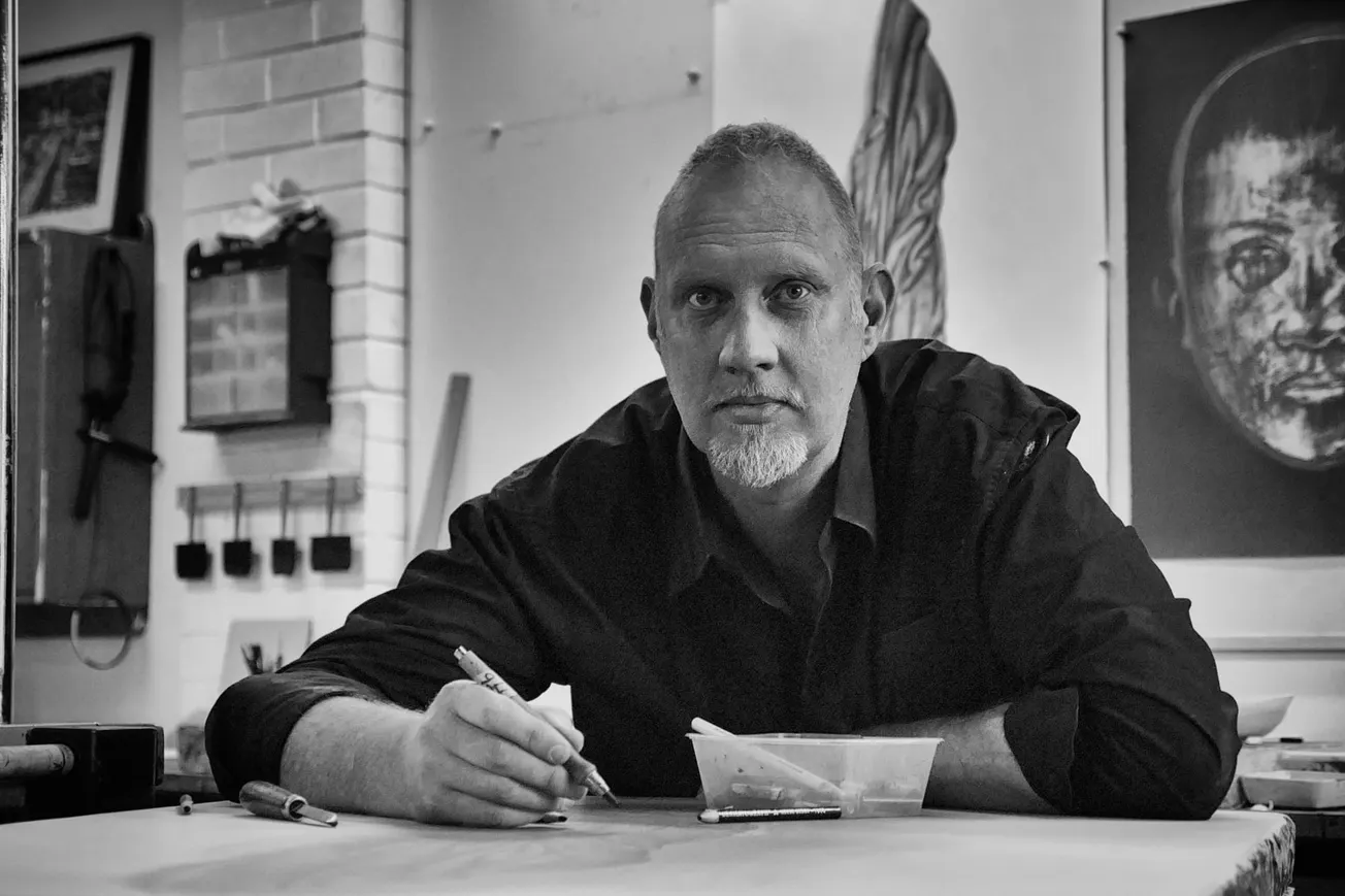 His print series, including the Trojan Hammer lithographs, reflect his ability to merge classical aesthetics with contemporary themes. In 2013, Deakin University Gallery presented a ten-year retrospective of his work, complemented by the publication Deca, featuring essays by prominent critics Ashley Crawford and Ken Scarlett. He has also participated in exhibitions like Melbourne Now 2023 at the National Gallery of Victoria.